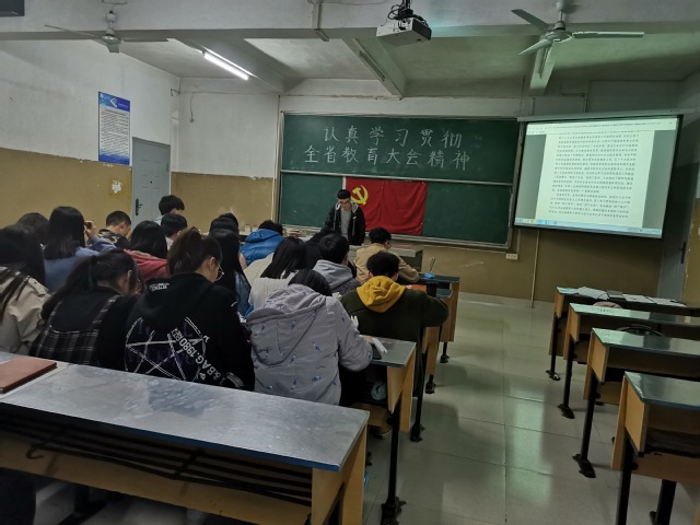 3月13日晚上,学生第二党支部组织全体党员学习全省教育大会精神。