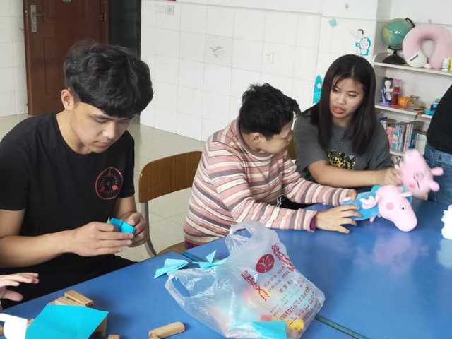 当天下午两点,志愿者们在理工三一楼大厅集合,共同前往福利院。到达福利院之后,志愿者们分工明确,部分志愿者为小童表演手偶,讲述生动有趣的故事,另一部分志愿者则大童折纸,一张张色彩鲜艳的纸张,在志愿者和小朋友的手中变换成许多好看又精致的小物件,在此次活动过程中,志愿者耐心地同小朋友玩乐,小朋友也因为志愿者的陪伴而露出了满足的笑容。