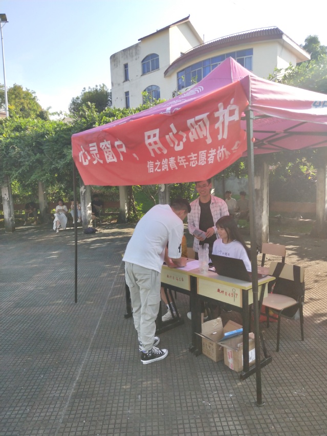 虽然布置场地时正值一天最热的时间,但青协的同学们的热情仍不见减,搬椅子、搭帐篷不久就把场地布置妥当。许是天气太热的原因,一开始是路过的同学并不是那么多。随着日影渐斜,加上我们青协同学的大声吆喝,越来越多的同学来了解这个活动,并且参与进来进行爱眼问答及护眼小游戏等环节。不仅了解了护眼知识,也收获了欢乐。