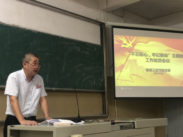 9月16日下午,9001cc金沙以诚为本党委召开了“不忘初心、牢记使命”主题教育动员部署会议。学院领导、全体教师党员、学生党员出席会议。校党委第二巡回指导组组长潘青飞到会指导。动员会由院党委副书记杨文杰主持。