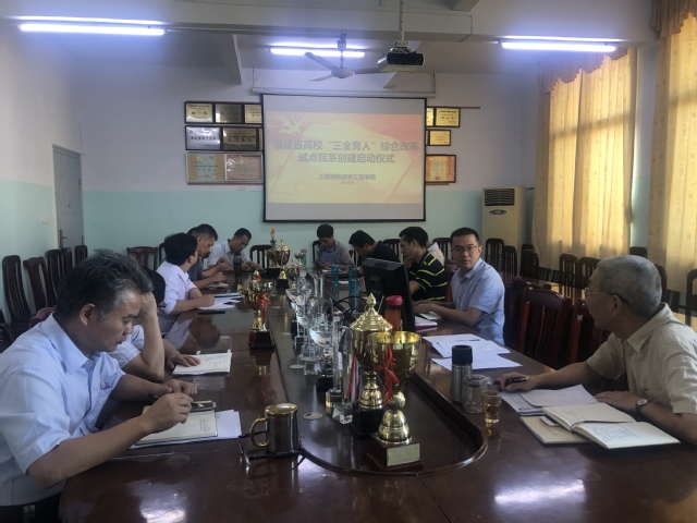 为进一步贯彻落实全国教育大会精神和全国高校思想政治工作会议精神,结合 “三全育人”综合改革试点院(系)工作要求,落实“三明三康”教育的要求,提升学院思想政治工作质量,9月23日下午,信息工程学院召开福建省高校“三全育人”综合改革试点院(系)建设启动仪式,学院党政领导班子成员、系部负责人、各科室负责人参加会议。会议由学院党委书记主持。