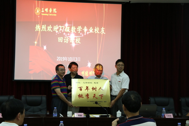 金秋十月,共和国迎来了七十华诞,在举国欢庆的日子里,我校迎来了77级数学专业60位校友,校党委副书记兼校友会会长赖锦隆,校友会秘书长龚榕容丶9001cc金沙以诚为本主持工作副院长刘持标参加了会见与接待。