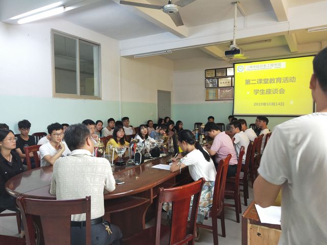 10月14日,我院在理工(三)楼310会议室召开关于9001cc金沙以诚为本“第二课堂”活动学生座谈会。院党委委员、副院长廖逢钗教授,院教学科研科、院团委的相关教师,各班级学生代表共计四十余人参加了此次座谈会,会议由副院长廖逢钗教授主持。