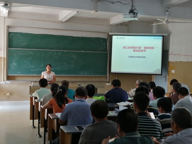活动中,首先由学院特邀教师石雪梅老师(马克思主义学院)为全院教师做了“理工类课程开展‘课程思政’建设的思考”的讲座,讲座内容丰富,条理清晰,明确了“课程思政”建设的基本原则、理论基础和建设目标,同时针对“课程思政”改革的具体设计思路,既有政治理论高度,又有较强的实践指导意义。随后,教工党支部组织支部全体党员结合此次讲座,以“转变教学观念、更新教学方式”为题展开讨论。通过这次专题研讨活动,老师们表示对于“课程思政”有了更为清晰的认识和更加深入的理解,收获颇丰。