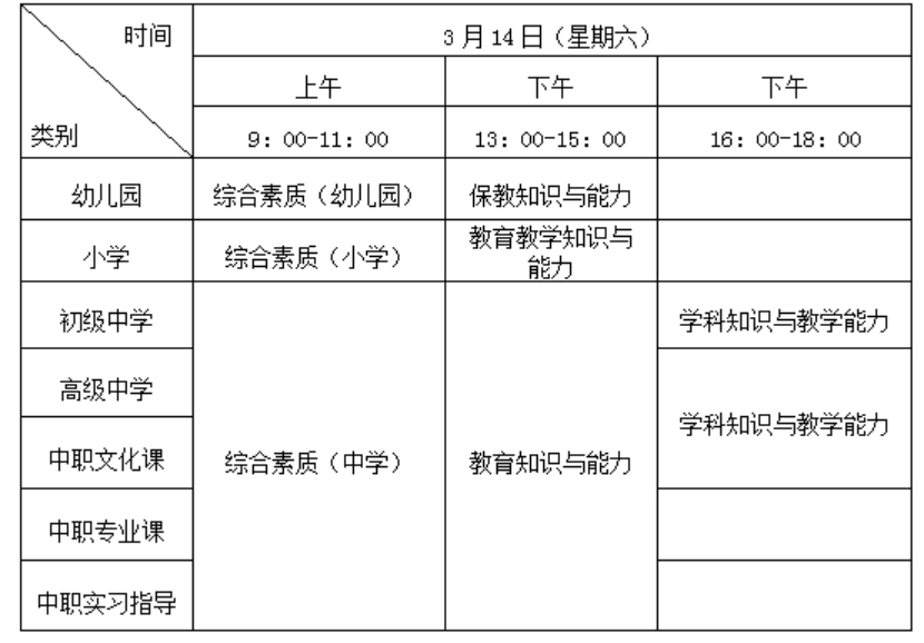 1.根据教育部统一部署,中小学教师资格考试初中、高中、中职文化课类别增设“心理健康教育”“日语”“俄语”学科;小学类别面试增设“心理健康教育”“信息技术”“小学全科”学科。上述各类别新增学科除“小学全科”学科我省暂缓开考外,其他学科的笔试科目一、科目二与已开考学科一致,初中、高中、中职文化课类别新增学科的笔试科目三《学科知识与教学能力》结合面试一并考核。