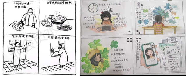 5月19日,“以心之名·以创战‘疫’”心理漫画大赛首先启动。同学们以手绘漫画的形式,述说自己疫情期间的所想所得。紧跟着,围绕“齐心防疫·弘扬文化”的主题班会活动通过各班联络群线上轮流展开,引起我院的积极讨论,来自18数学与应用数学的胡美玲同学表示,此次主题班会不仅进一步提升在校大学生的心理素质,更加强了学生的自我保护意识及对防疫文化的认识,让大家受益匪浅。