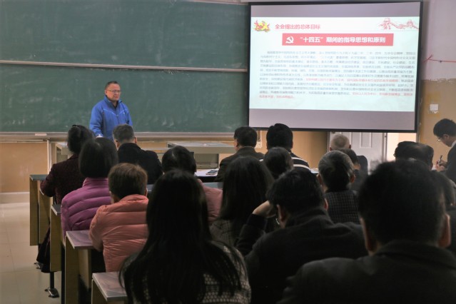 会上高浩教授从“十三五”以来取得的成就到“十四五”期间的指导思想和原则,讲解了我们面临的机遇和挑战。而后将全会的总目标展现,并提出要求。应当以自身工作为出发点,弘扬十九届五中全会精神:坚定文化自信,建设文化强国。同时利用新媒体助学及课堂教学主渠道的作用,开展全方位、系统化、专题化、多层次、多形式的学习宣讲活动,掀起学习宣传贯彻党的十九届五中全会精神热潮。