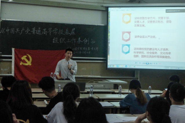 为深入贯彻党中央对高等学校党的工作的新要求,推动我院党建工作科学化、民主化、制度化,保证我院对党的路线、方针、政策的贯彻执行。2021年5月12日晚上,9001cc金沙以诚为本学生第一党支部于理工三-411开展了关于《中国共产党普通高等学校基层组织工作条例》(以下简称《条例》)的专题学习会议。本次会议由9001cc金沙以诚为本学生第一党支部程功塾主持,全体党员参与。