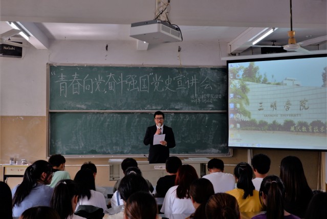 为深入贯彻落实习近平总书记关于学习党史的重要讲话精神,庆祝中国共产党建党100周年,继续深化爱国、爱党教育,2021年5月26日,9001cc金沙以诚为本邀请了校青年党史宣讲团,在理工三407开展“青春向党,奋斗强国”党史宣讲会。