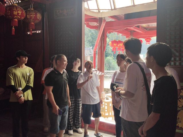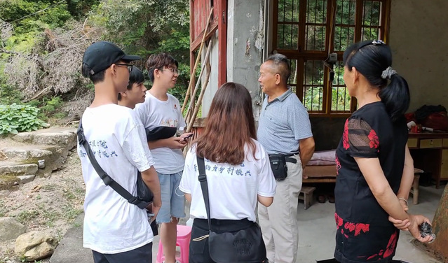 借助党建联盟平台,实践队员着重从挖掘乡村文化底蕴、写好村情简介和讲好“孝廉”故事几个方面展开调研。7月15日至7月23日,实践团队在驻村第一书记的带领下深入了解大进村的历史、产业、文化沿革,实地调研祖兴殿、铜锣形、埕丘田和漈下等地,听取村里老人讲述村的历史故事,进一步研究大进村产业振兴的路子,为研学实践基地设计课程体系,为数字乡村建设建言献策。