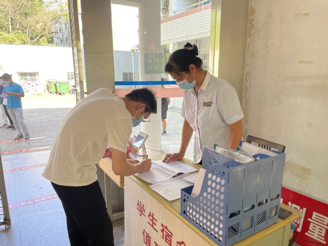 按照学校2021年秋季学生返校疫情防控的要求,本次演练模拟学生入校进行三码联查、检查学生返校申请书和核酸检测阴性证明后分发返校通行证。并在宿舍进行二次体温测量检查等。还模拟了如遇到体温较高学生应对情况。