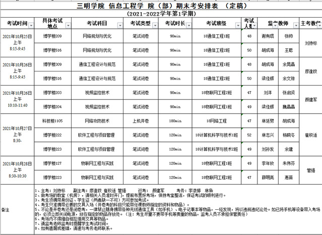 2021-2022学年第1学期9001cc金沙以诚为本18级期末考安排表 (定稿)