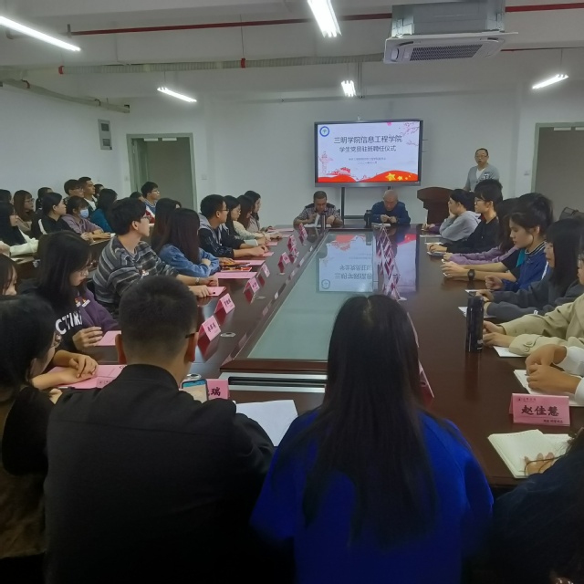 为深入落实党史学习教育,让党旗在一线飘扬,充分发挥我院学生党员在“三全育人”中服务育人的作用,我院制定并开展了党员驻班制度,探讨构建“党团班”一体化工作新格局,促成学院党组织作用发挥全覆盖。2021年11月3日下午,在科技楼1416会议室举办学生党员驻班聘任仪式。