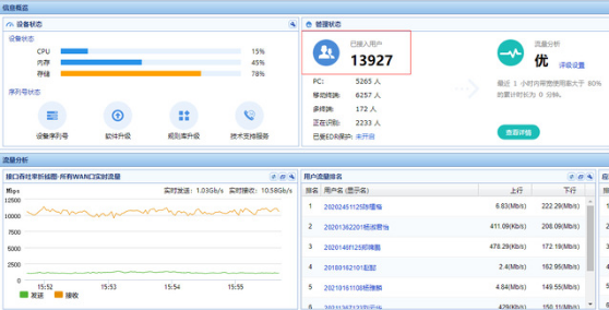 由于疫情原因,学生全部在校进行线上教学,本次网络保障工作“要求高”“数量大”“场地散”。一是课程采用线上直播授课的方式,对网络高效性和稳定性要求高;二是在线师生数量大,全校一万多名在校学生同时开启线上课程;三是校区场地分散,保障运维难度大。线上教学前两天,网络中心对我校所有网络设备的运行状态进行了全面巡检,迅速完成故障排除及设备修复工作,反复修订应急保障方案,确保突发故障及时闭环。