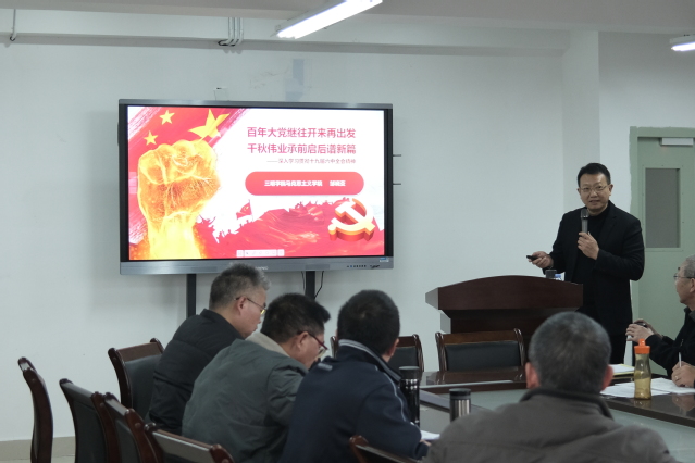 邹晓芟教授以《中共中央关于党的百年奋斗重大成就和历史经验的决议》为纲,从充分认识中国共产党百年奋斗的重大成就和历史经验、十九届六中全会提出的一系列新思想、新观点、新要求和深刻领会新时代我们党的努力方向、坚定不移地走好新的赶考之路等四个方面,对党的十九届六中全会精神进行了全面解读。