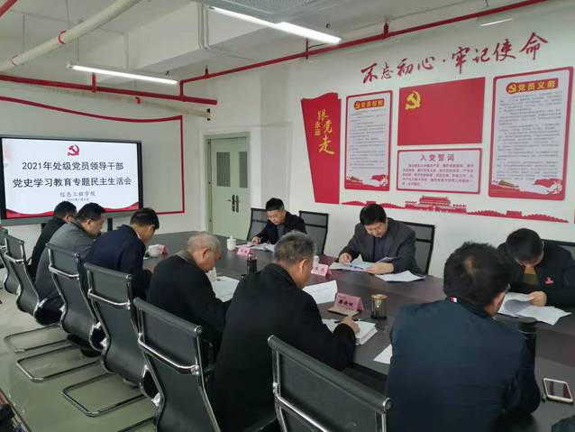 2022年1月4日上午,9001cc金沙以诚为本召开2021年度处级党员领导干部党史学习教育专题民主生活会。校党委委员、副校长吴龙,校党委组织部、校纪委办相关人员参加会议。