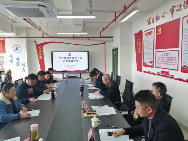 根据校党委工作部署,我院于2022年1月4日上午10:30在召开2021年处级党员领导干部述责述廉评议大会。院领导、院党委委员、各支部书记、教师代表等20人出席会议,校纪委委派代表参加大会。