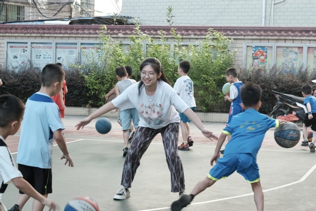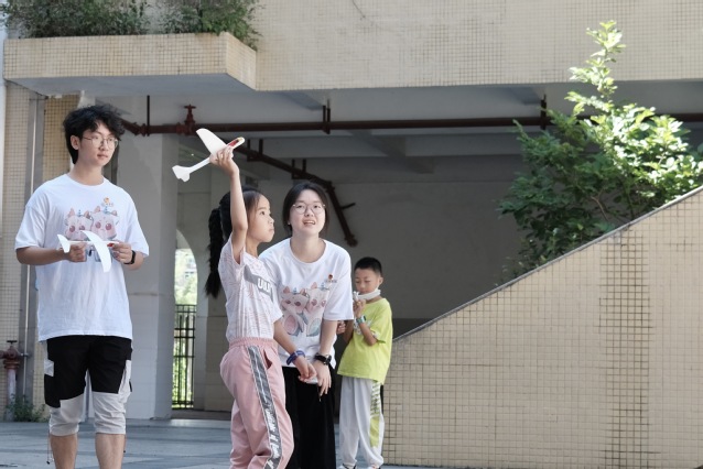 实践团队在当地学校的帮助下开设了内容丰富、形式多样的兴趣课程,涵盖口语、编程、航模、美术、文体活动等。在支教活动中,实践队成员充分发挥自身优势,对学生进行现场篮球教学,传授篮球技巧动作,培养学生对体育的兴趣;在“一对一”少儿美术基础课程中,调动了学生自身的想象力,手把手引导学生完成“我眼中的海洋世界”等绘画作品;在航模课上,一起探索航模的新奇,带领学生学习如何操控无人机飞行、调整水火箭发射的准度,感受航天精神的伟大。“虽然天气炎热,但是能用我们的实际行动带给孩子们欢乐,用关爱、耐心向孩子们传递温暖,点亮孩子们希望的心灯,我们深感不负此行,意义重大。”实践队员张小芳如是说。