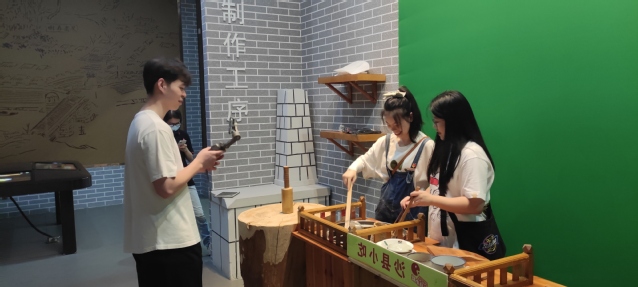 习近平总书记来闽考察时点赞的沙县小吃,如何成为舌尖上的特色产业?为此,团队成员来到沙县小吃文化科技馆利用VR技术从不一样的视角感受沙县小吃制作过程。同时在展览馆中陈列着早期制作沙县小吃的传统工具,团队成员近距离的观看古人的智慧,并通过实际动手、卡通游戏体验沙县小吃制作、感受沙县小吃1600多年的传承和二十多年的发展。同时,实践团队成员还拍摄了以“小城故事的大变化”为主题的思政微电影,展现古城旅游文化魅力,凸显古城美食文化底蕴。
