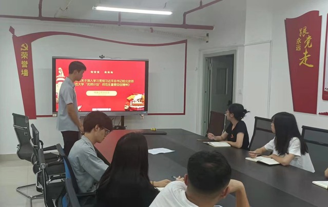 陈建杰同志带领全体党员学习习近平总书记给北京师范大学“优师计划”师范生回信内容,并就回信精神,他谈到,作为大学生党员,要学习好专业知识,最大程度的提升自己,发挥党员的先锋模范作用,为身边同学排忧解难,让青春绽放在祖国最需要的地方。随后,与会党员逐一发表了学习感想。