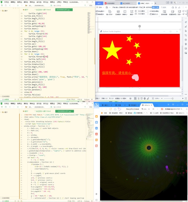 参赛选手们在有限的时间内围绕“编译蓝图,强国有我”主题,通过运用所学的编程语言,挖掘自身的创造力,编写有创意的代码。比赛过程中,选手们认真思考,勇于创新,设计出了形式多样的代码,充分展现出了选手们的创造力与编程能力。