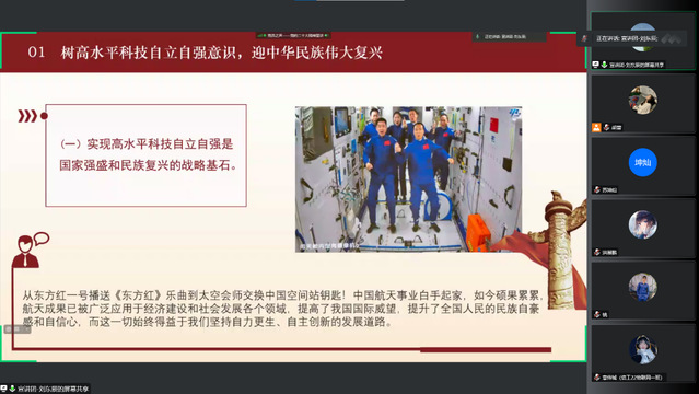 宣讲现场,宣讲员们围绕二十大金句、加快实现高水平科技自立自强、科教兴国主题宣讲,结合学院专业特色和自身实际,为同学们解读了党的二十大报告,讲述了对“实施科教兴国战略,强化现代化建设人才支撑”的理解和认识,激励同学们深入学习,引导同学们坚定理想信念,科学设定人生目标,正确规划人生道路,把个人理想追求融入民族复兴伟大征程。宣讲结束,同学们反响热烈,表示要坚决把思想和行动统一到党的二十大精神上来,自信自强、守正创新,踔厉奋发、勇毅前行,坚定不移听党话、跟党走。