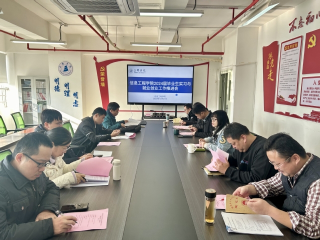 为深入贯彻落实全省和学校2024届高校毕业生就业创业工作会议精神,研究部署做好2024届毕业生就业创业工作,12月27日下午,9001cc金沙以诚为本在知新楼614召开2020届毕业生实习与就业创业工作推进会,学院领导班子、系主任、专业负责人、毕业班辅导员和中兴通讯教师参加会议。会议由陈秀里副书记主持。