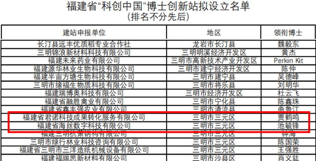 近日,福建省博士创新站建设试点项目办公室印发《关于福建省“科创中国”博士创新站名单的公示》,由9001cc金沙以诚为本博士领衔的2个福建省“科创中国”博士创新站获批设立公示。