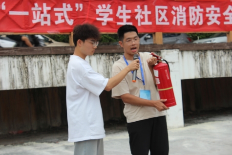 “嘟——嘟——”一阵急促而尖锐的哨声骤然响起,应急疏散演练就此拉开序幕。楼栋内“火情”蔓延,在楼层长的引导下,同学们按疏散指示图路线,用湿毛巾捂口鼻、低身俯身,依培训方法规范有序撤离。随后,消防团队还详细地为师生讲解了灭火器的操作与使用方法,并开展了一场深入的消防知识培训。